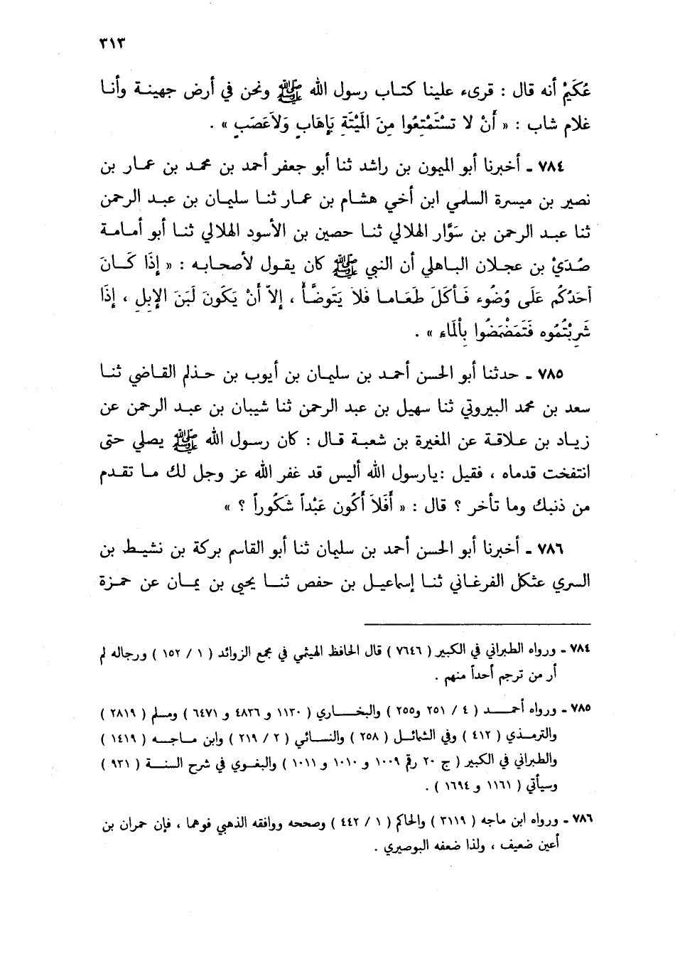 785 - حَدَّثَنَا أَبُو الْحَسَنِ أَحْمَدُ بْنُ سُلَيْمَانَ بْنِ أَيُّوبَ بْنِ حَذْلَمٍ الْقَاضِي، ثنا سَعْدُ بْنُ مُحَمَّدٍ الْبَيْرُوتِيُّ، ثنا سُهَيْلُ بْنُ عَبْدِ الرَّحْمَنِ، ثنا شَيْبَانُ بْنُ عَبْدِ الرَّحْمَنِ، عَنْ زِيَادِ بْنِ عِلَاقَةَ، عَنِ الْمُغِيرَةِ بْنِ شُعْبَةَ، قَالَ: كَانَ رَسُولُ اللَّهِ صَلَّى اللهُ عَلَيْهِ وَسَلَّمَ يُصَلِّي حَتَّى انْتَفَخَتْ قَدَمَاهُ، فَقِيلَ يَا رَسُولَ اللَّهِ أَلَيْسَ قَدْ غُفِرَ اللَّهُ عَزَّ وَجَلَّ لَكَ مَا تَقَدَّمَ مِنْ ذَنْبِكَ وَمَا تَأَخَّرَ؟ قَالَ: §«أَفَلَا أَكُونُ عَبْدًا شَكُورًا»