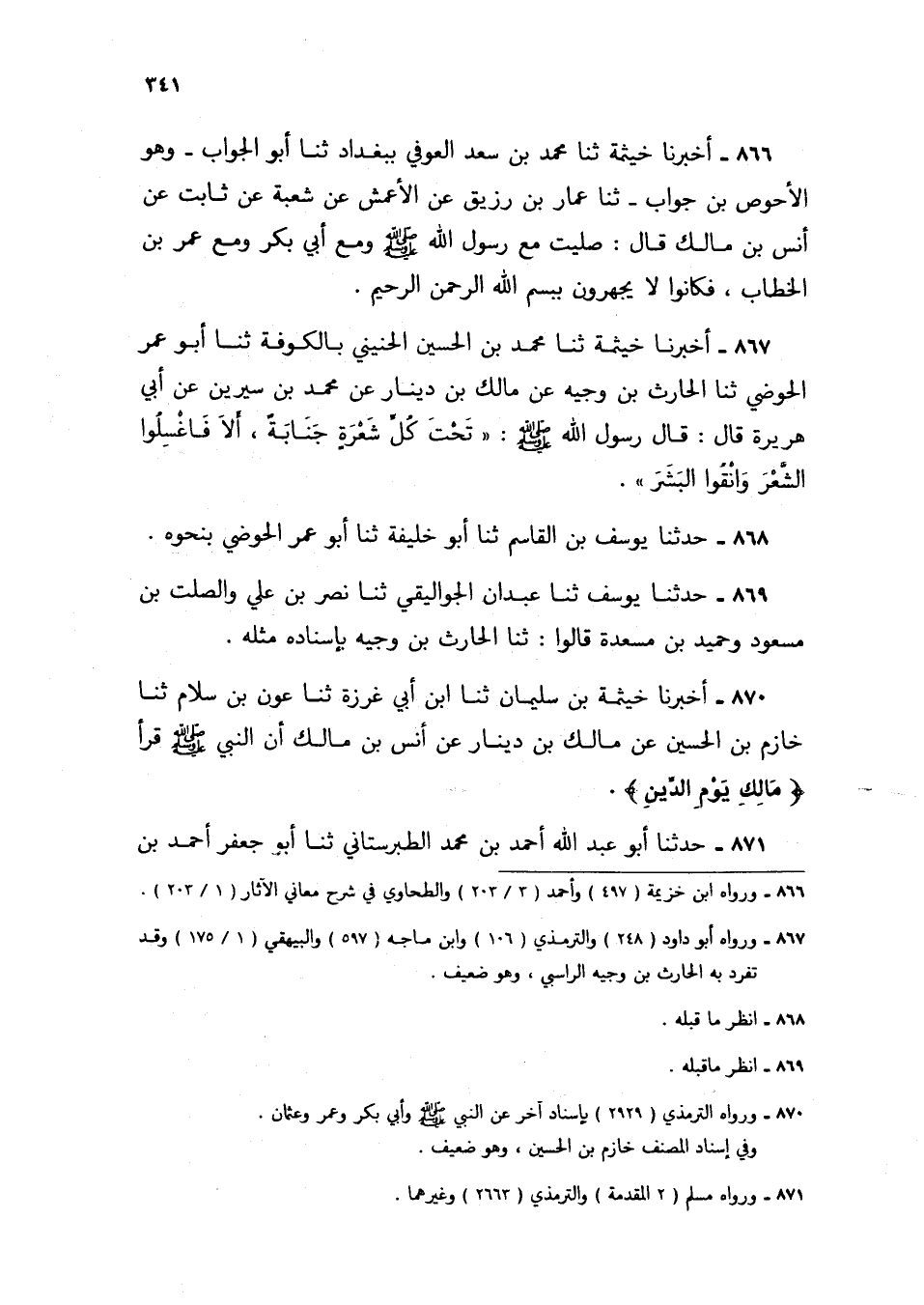 871 - حَدَّثَنَا أَبُو عَبْدِ اللَّهِ أَحْمَدُ بْنُ مُحَمَّدٍ الطَّبَرَسْتَانِيُّ، ثنا أَبُو جَعْفَرٍ أَحْمَدُ بْنُ -[342]- عَبْدِ اللَّهِ الْغَزَا بِطَبَرِسْتَانَ سَنَةَ ثَلَاثٍ وَسَبْعِينَ وَمِائَتَيْنِ، ثنا هَوْذَةُ بْنُ خَلِيفَةَ، ثنا سُلَيْمَانُ التَّيْمِيُّ، عَنْ أَنَسِ بْنِ مَالِكٍ، قَالَ: قَالَ رَسُولُ اللَّهِ صَلَّى اللهُ عَلَيْهِ وَسَلَّمَ: «§مَنْ كَذَبَ عَلَيَّ مُتَعَمِّدًا فَلْيَتَبَوَّأْ مَقْعَدَهُ مِنَ النَّارِ» ،