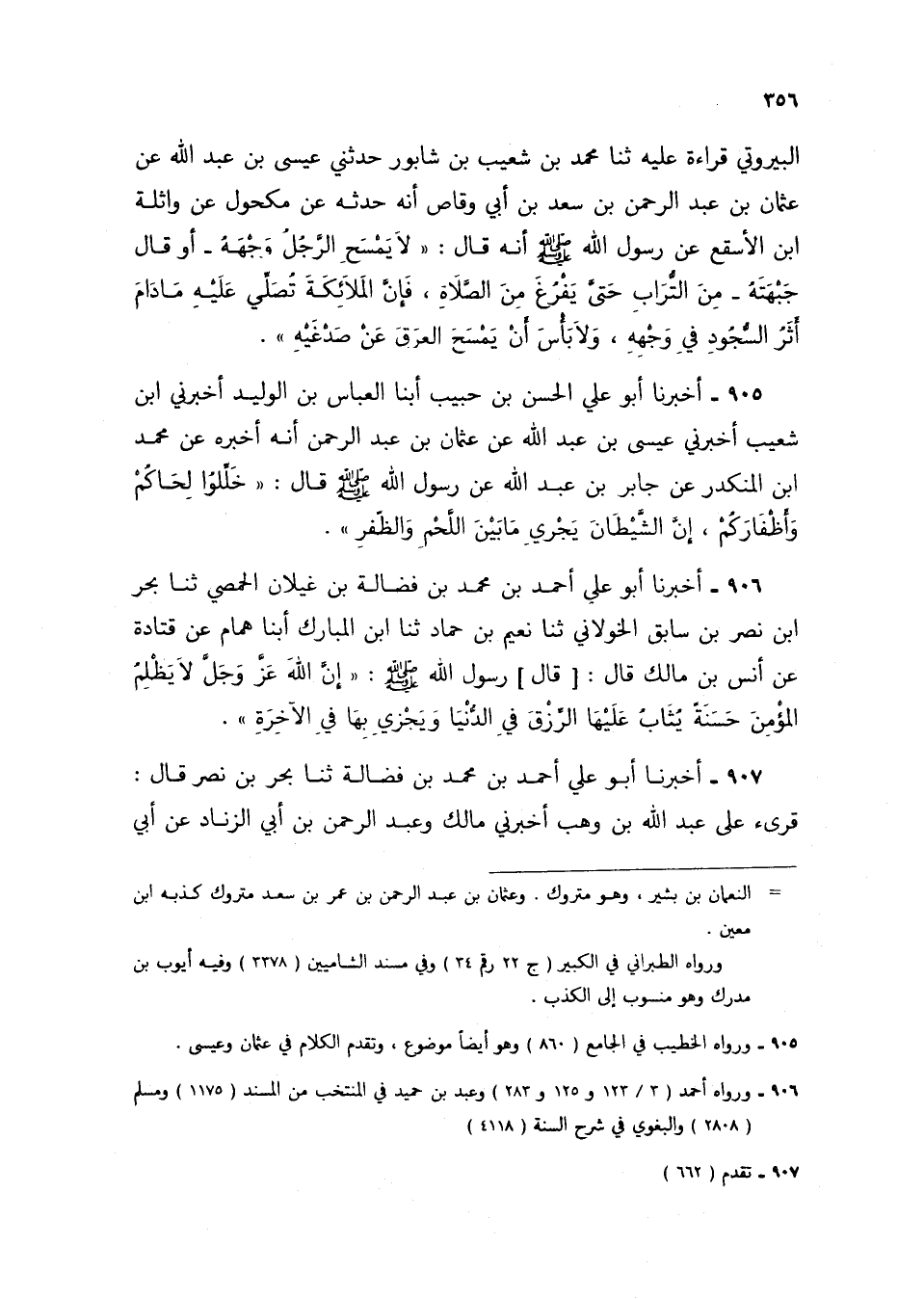 906 - أَخْبَرَنَا أَبُو عَلِيٍّ أَحْمَدُ بْنُ مُحَمَّدِ بْنِ فَضَالَةَ بْنِ غَيْلَانَ الْحِمْصِيُّ، ثنا بَحْرُ بْنُ نَصْرِ بْنِ سَابِقٍ الْخَوْلَانِيُّ، ثنا نُعَيْمُ بْنُ حَمَّادٍ، ثنا ابْنُ الْمُبَارَكِ، أبنا هَمَّامٌ، عَنْ قَتَادَةَ، عَنْ أَنَسِ بْنِ مَالِكٍ، قَالَ: قَالَ رَسُولُ اللَّهِ صَلَّى اللهُ عَلَيْهِ وَسَلَّمَ: «إِنَّ §اللَّهَ عَزَّ وَجَلَّ لَا يَظْلِمُ الْمُؤْمِنَ حَسَنَةً يُثَابُ عَلَيْهَا الرِّزْقَ فِي الدُّنْيَا وَيُجْزَى بِهَا فِي الْآخِرَةِ»