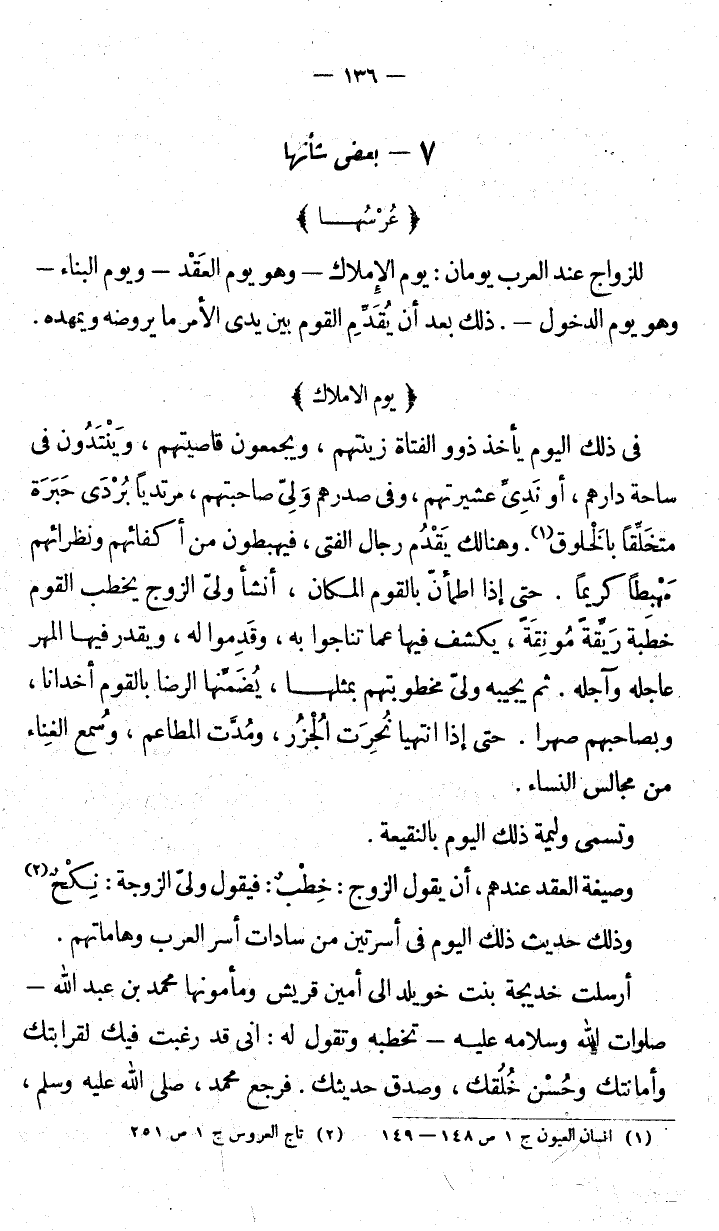 وصيغة العقد عندهم، أن يقوم الزوج: خِطْبٌ. فيقول وليّ الزوجة: نِكْحٌ. وذلك حديث ذلك اليوم في أسرتين من سادات أسر العرب وهاماتهم.
