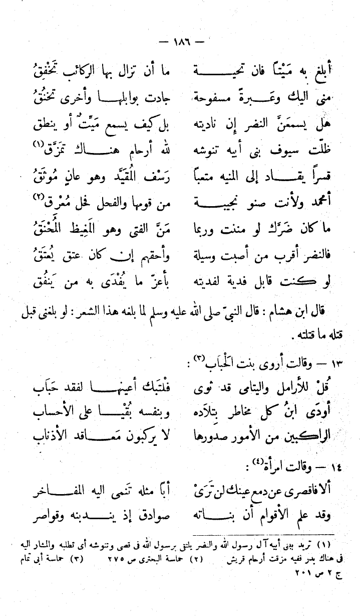 قال ابن هشام: قال النبي صلى الله عليه وسلم لما بلغه هذا الشعر: لو بلغني قبل قتله ما قتلته: