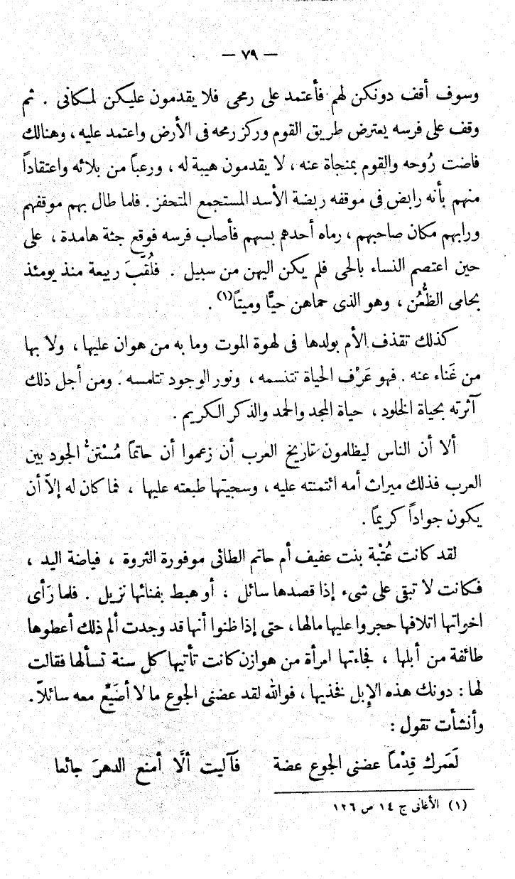 ألا إن الناس ليظلمون تاريخ العرب أن زعموا أن حانماً مُسْتنُّ الجود بين العرب فذلك ميراُ أمته ائتمنه عليه؛ وسجيتها طبعته عليها؛ فما كان له إلا أن يكون جواداً كريماً.