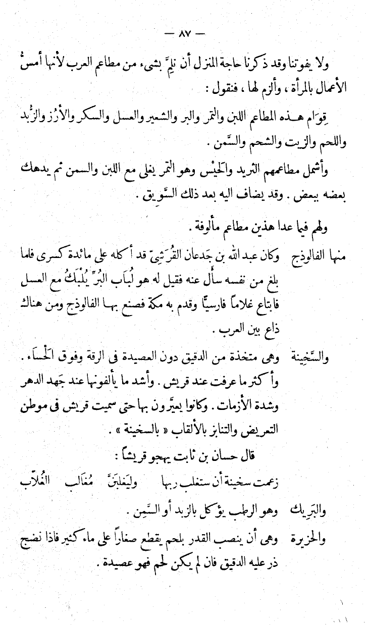 ولا يفوتنا وقد ذكرنا حاجة المنزل أن نلم بشيء من مطاعم العرب لأنها أمسُّ الأعمال بالمرأة، وألزم لها، فنقول: