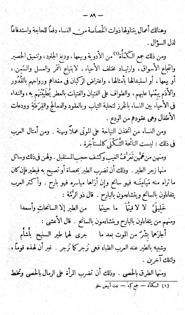 وهنالك أعمال يتناولها ذوات الخصاصة من النساء دفعاً للحاجة واستدفاعاً لذل
