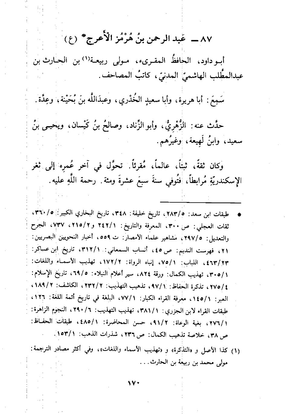 87 - عَبد الرحمن بنُ هُرْمُز الْأَعرج (ع)