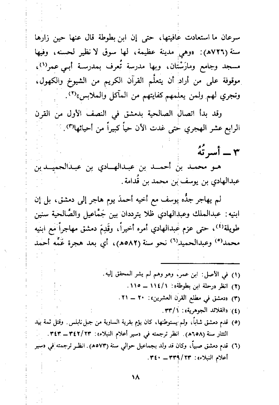 (¬6) قدم دمشق صبيًّا، وكان قد ولد بجماعيل حوالي سنة (573 هـ). انظر ترجمته في "سير أعلام النبلاء": 23/ 339 - 340.