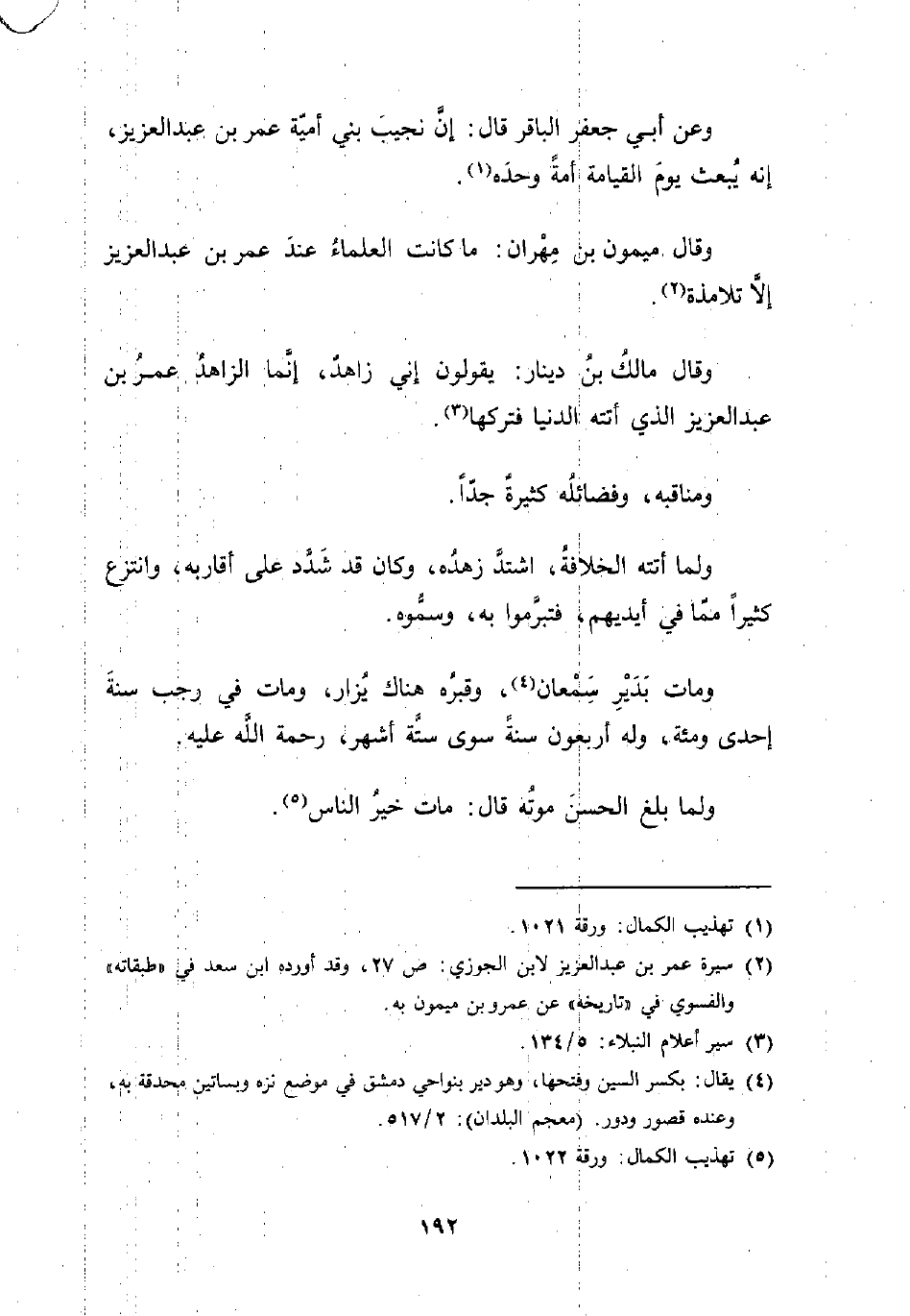 (¬2) سيرة عمر بن عبد العزيز لابن الجوزي: ص 27، وقد أورده ابن سعد في "طبقاته" والفسوي في "تاريخه" عن عمرو بن ميمون به.