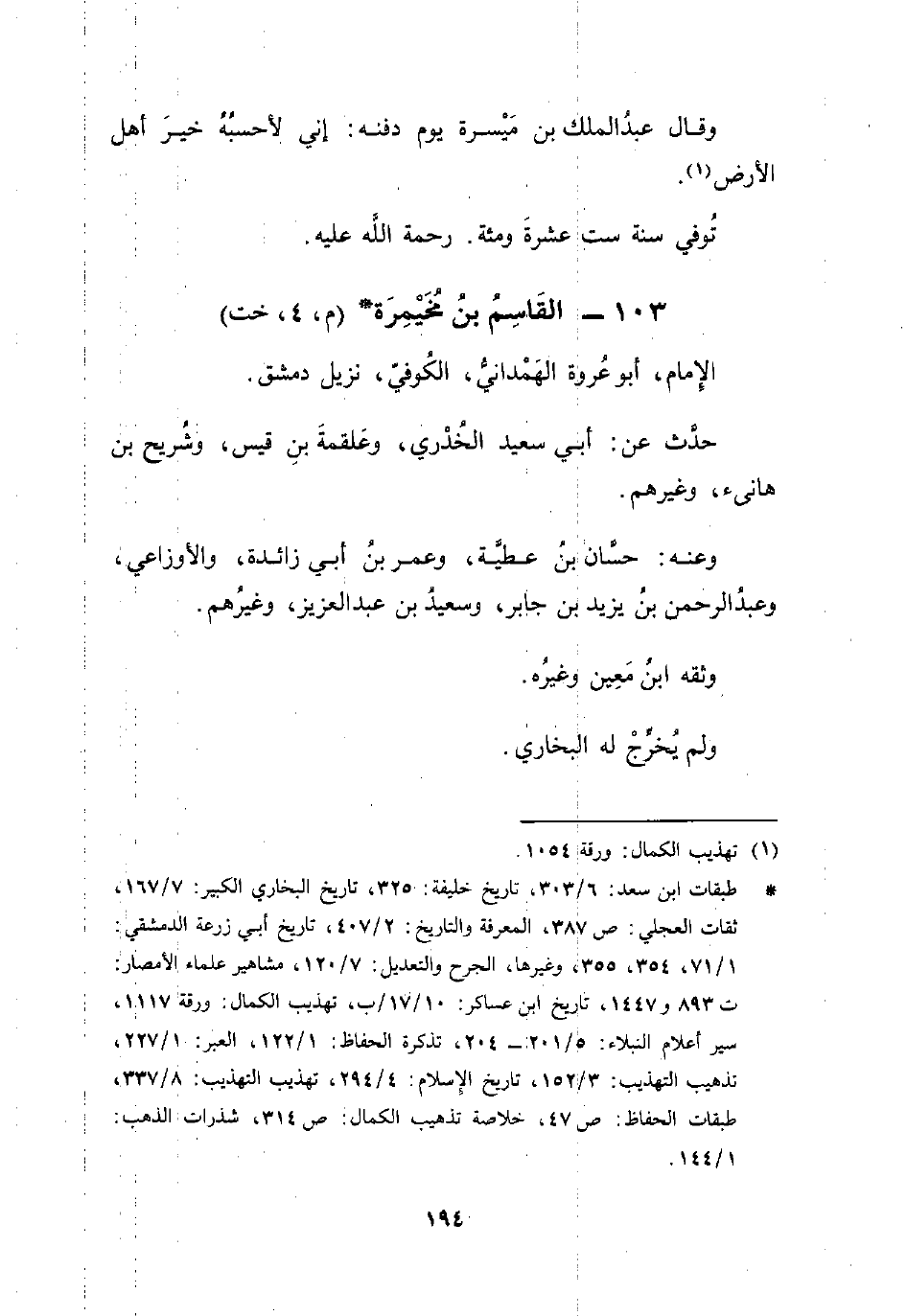 103 - القَاسمُ بنُ مُخَيْمِرَة * (م، 4، خت)