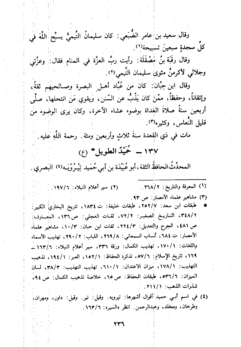 وقال سعيد بن عامر الضُّبَعي: كان سليمان التَّيميُّ يسبِّح اللهَ في كل سجدةٍ سبعينَ تسبيحة (¬1).