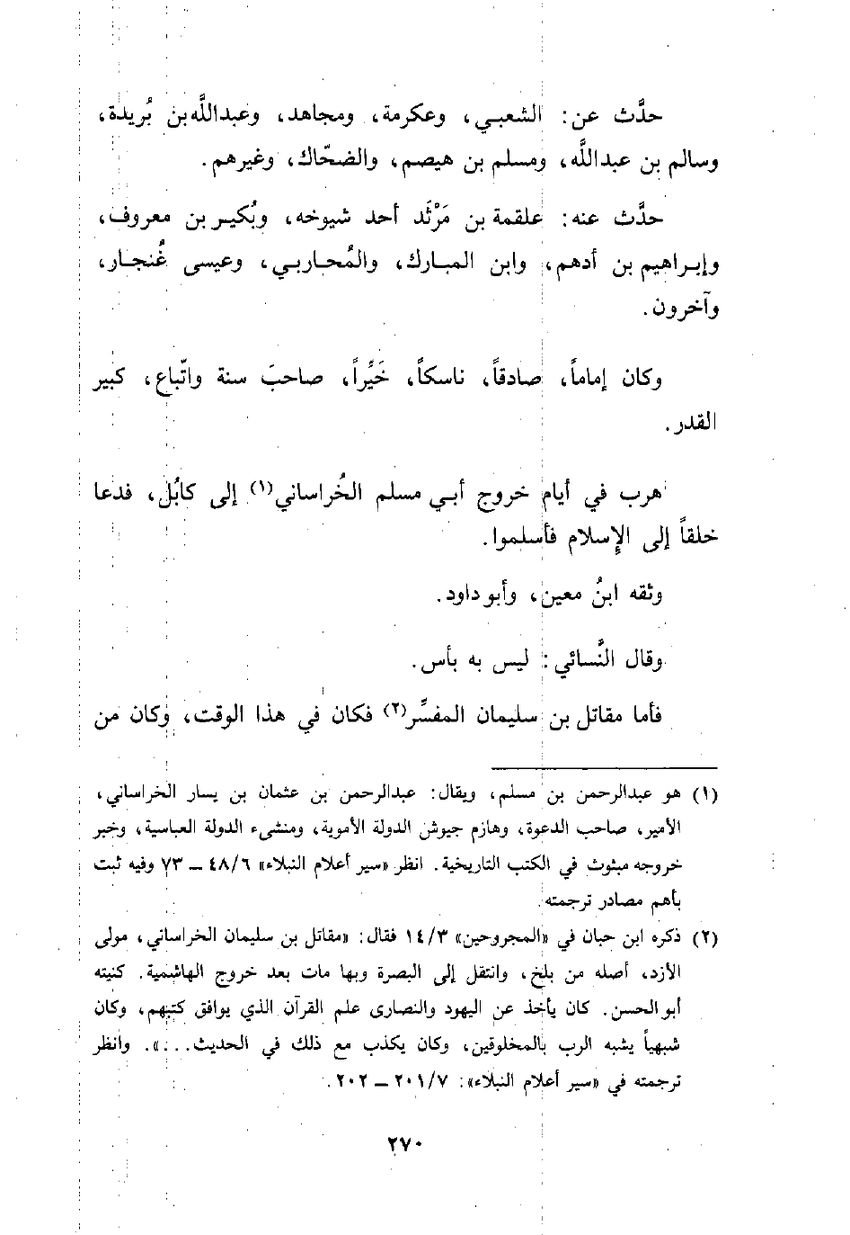 (¬2) ذكره ابن حبان في "المجروحين" 3/ 14 فقال: "مقاتل بن سليمان الخراساني، مولى الأزد، أصله من بلخ، وانتقل إلى البصرة وبها مات بعد خروج الهاشمية. كنيته أبو الحسن. كان يأخذ عن اليهود والنصارى علم القرآن الذي يوافق كتهم، وكان شبهيًا يشبه الرب بالمخلوقين، وكان يكذب مع ذلك في الحديث ... ". وانظر ترجمته في "سير أعلام النبلاء": 7/ 201 - 202.