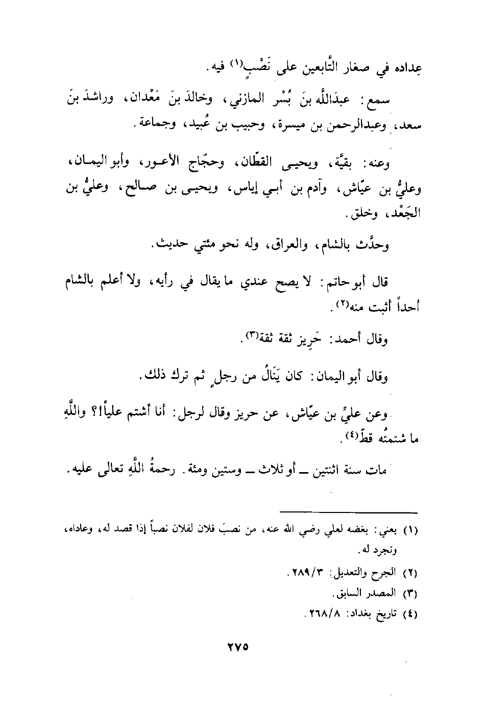 (¬4) تاريخ بغداد: 8/ 268.