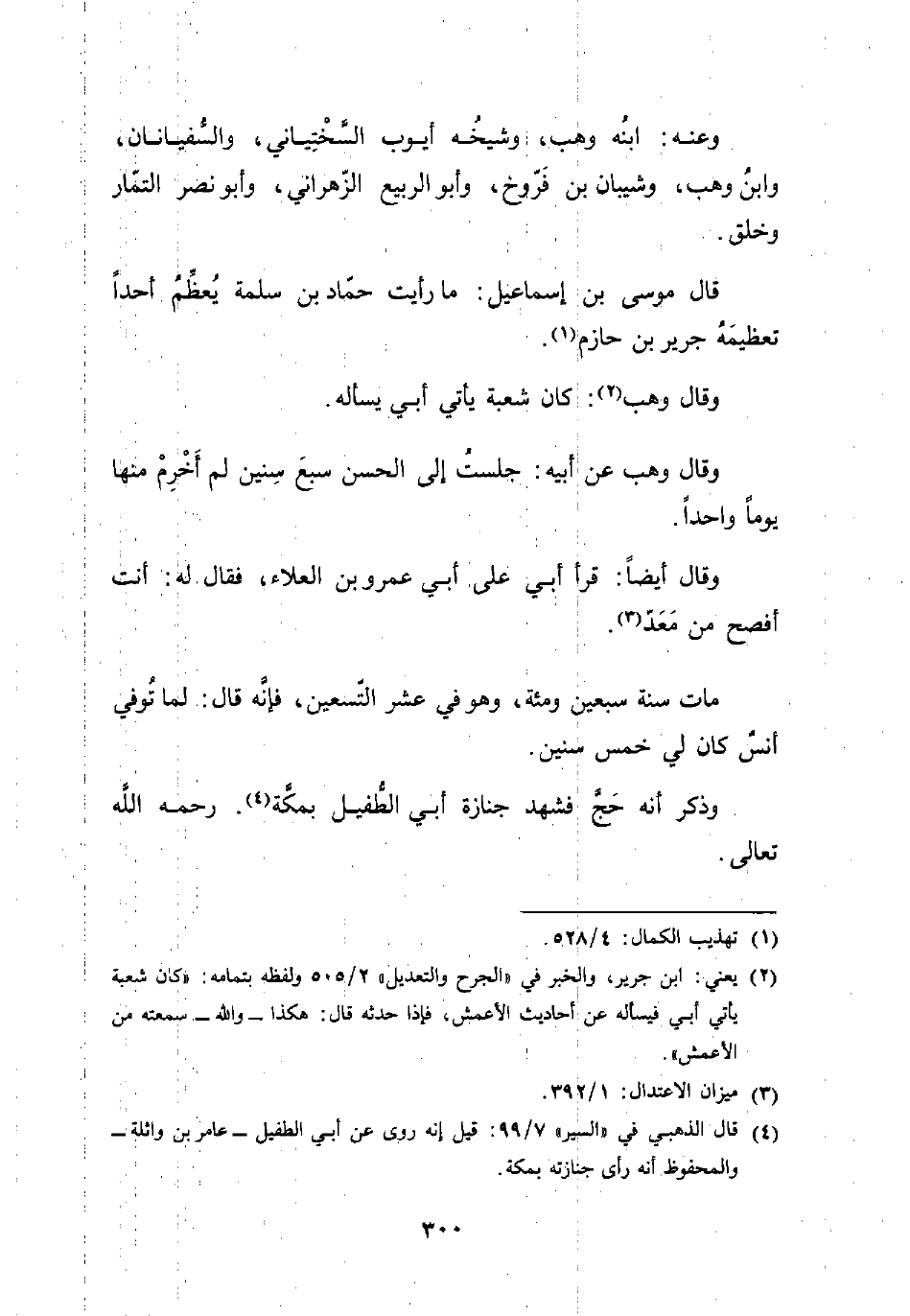 قال موسى بن إسماعيل: ما رأيت حمّاد بن سلمة يُعظِّم أحدًا تعظيمَهُ جرير بن حازم (¬1).