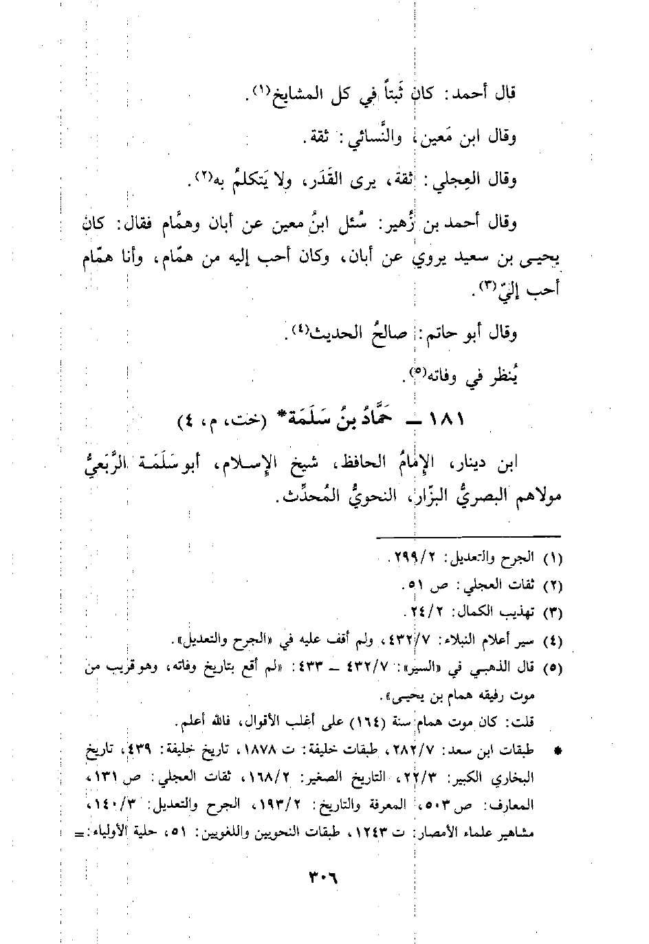 181 - حَمَّادُ بنُ سَلَمَة * (خت، م، 4)