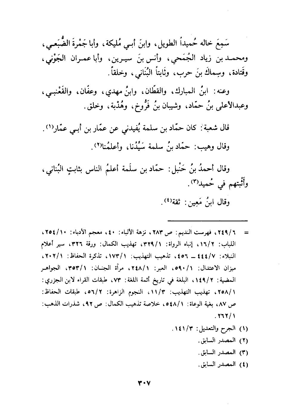 وقال أحمدُ بنُ حَنْبل: حماد بن سلمة أعلم النَّاس بثابت البُناني، وأَثْبتهم في حُميد (¬3).