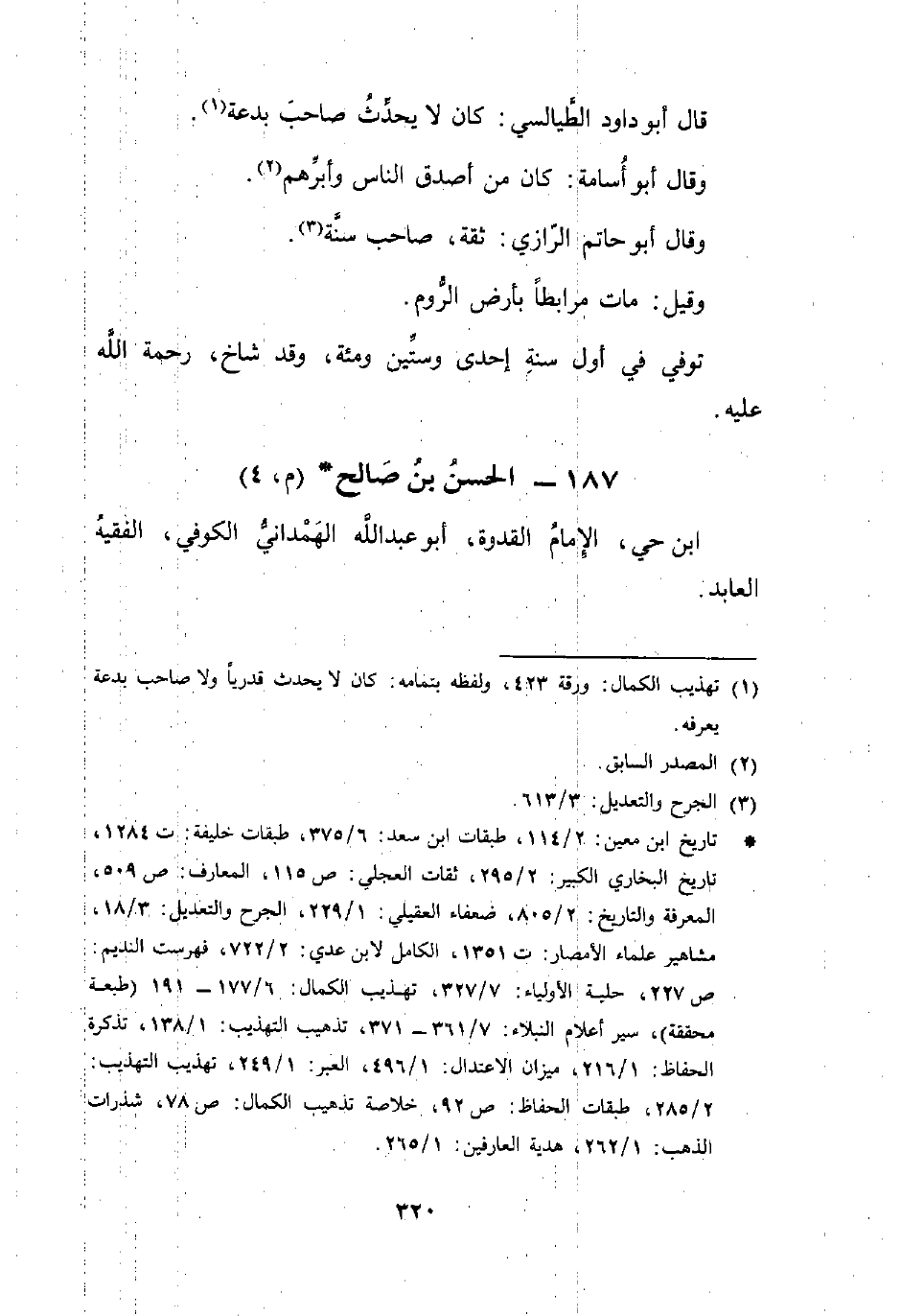 (¬1) تهذيب الكمال: ورقة 423، ولفظه بتمامه: كان لا يحدث قدريًّا ولا صاحب بدعة يعرفه.