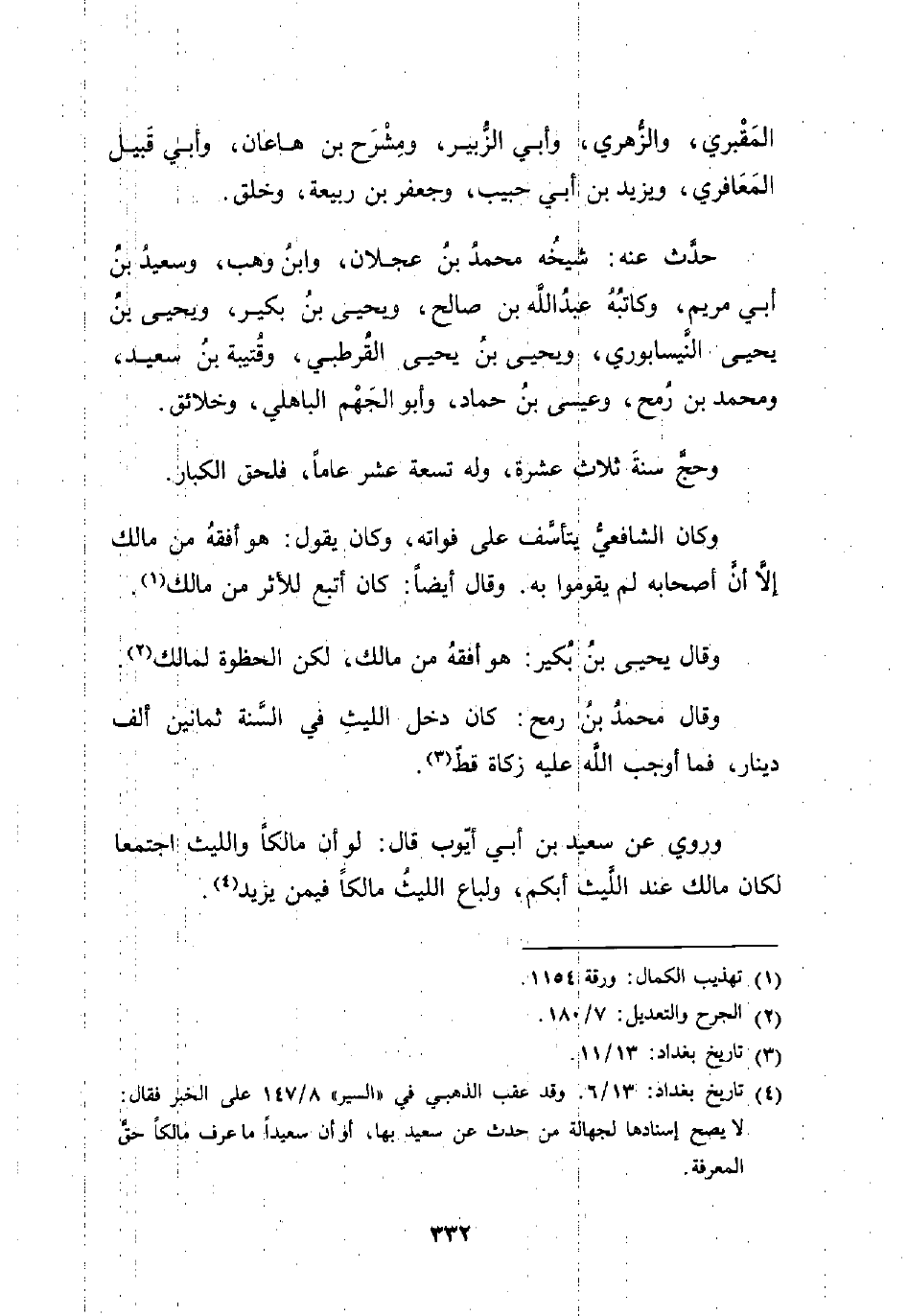(¬4) تاريخ بغداد: 6/ 13. وقد عقب الذهبي في "السير" 8/ 147 على الخبر فقال: لا يصح إسنادها لجهالة من حدث عن سعيد بها، أو أن سعيدًا ما عرف مالكًا حق المعرفة.