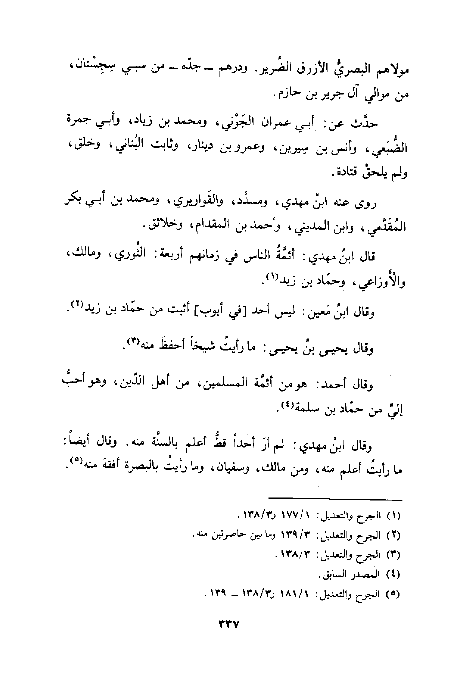 قال ابنُ مهدي: أئمة النَّاس في زمانهم أربعة: الثَّوريّ، ومالك، والأوزاعي، وحمّاد بن زيد (¬1).