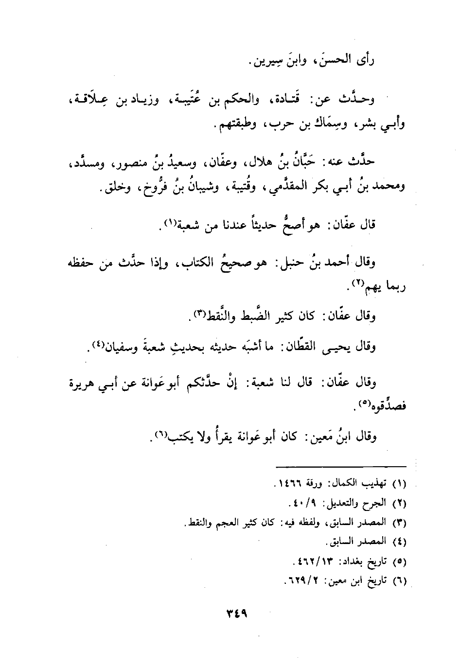 وقال ابنُ مَعين: كان أبو عَوانة يقرأُ ولا يكتب (¬6).
