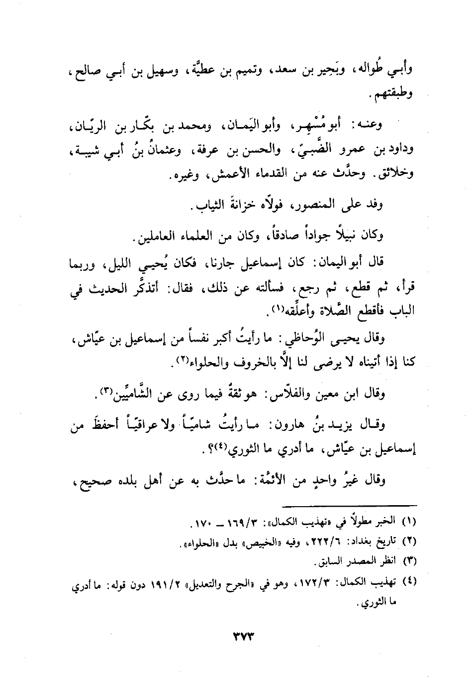 وقال يحيى الوُحاظي: ما رأيت أكبر نفسًا من إسماعيل بن عيّاش، كنا إذا أتيناه لا يرضى لنا إلَّا بالخروف والحلواء (¬2).