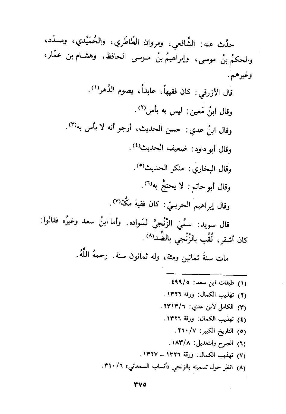 (¬8) انظر حول تسميته بالزنجي "أنساب السمعاني" 6/ 310.