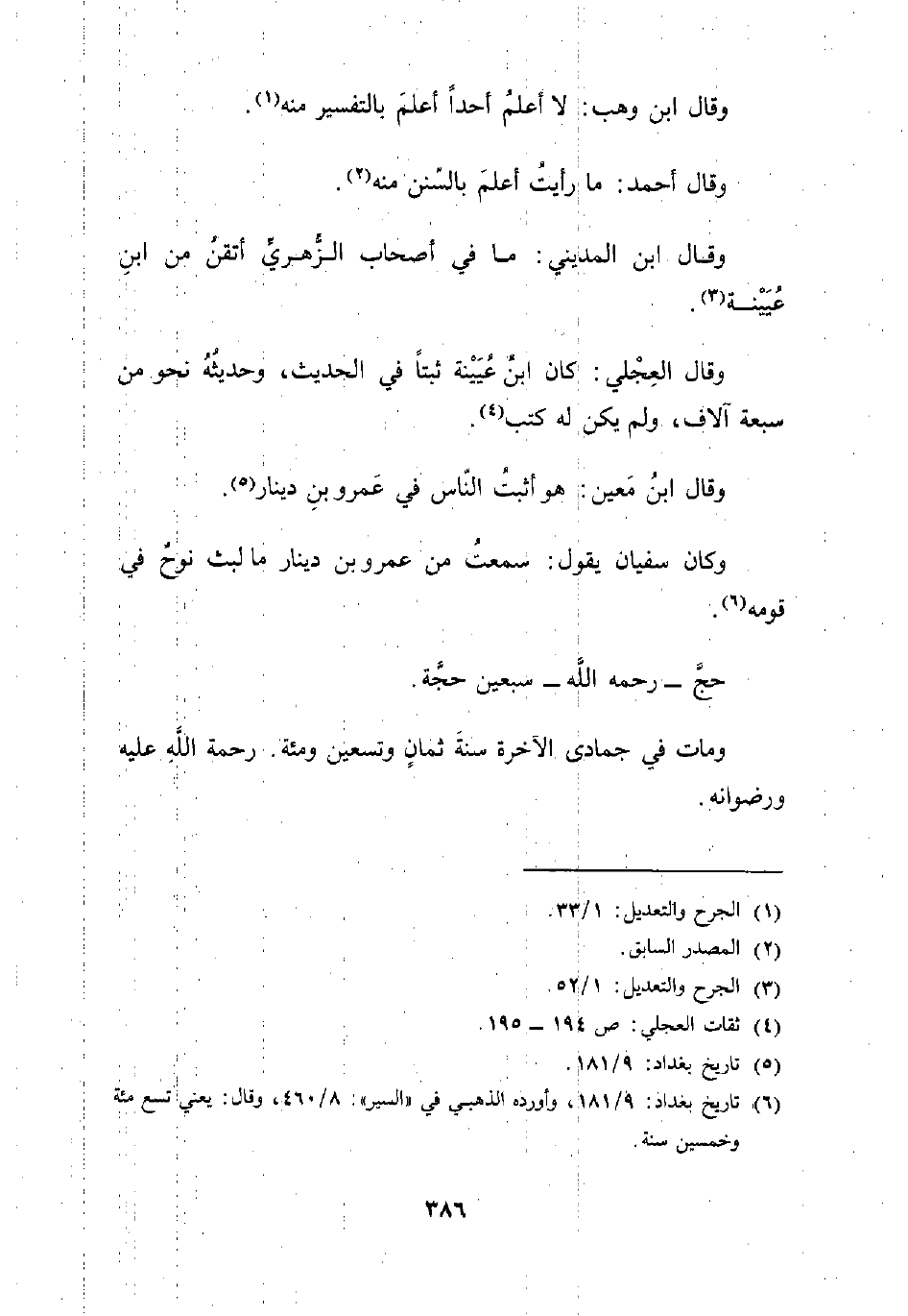 وقال العِجْلي: كان ابنُ عُيَينة ثبتًا في الحديث، وحديثُهُ نحو من سبعة آلاف، ولم يكن له كتب (¬4).