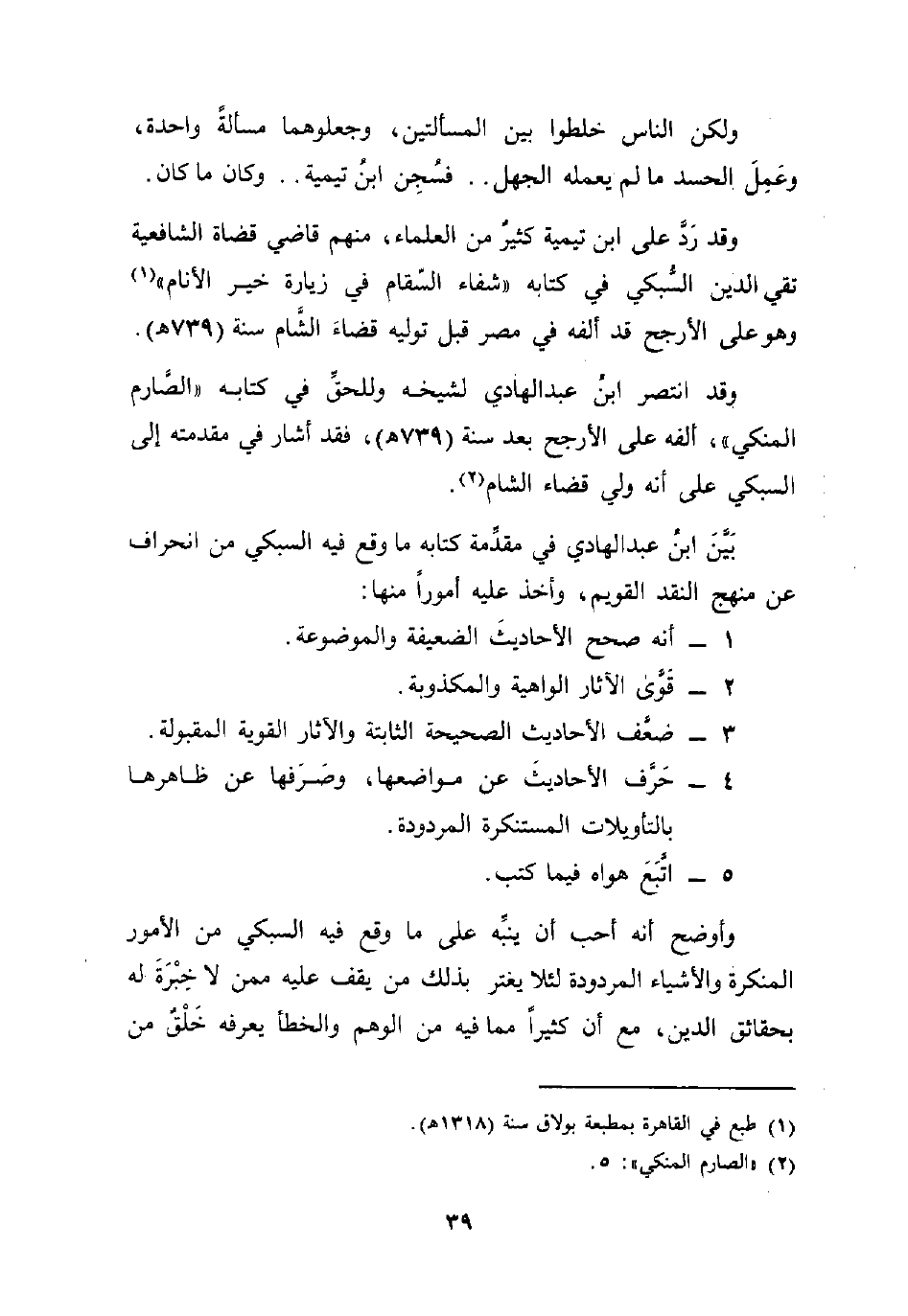 بَيَّنَ ابنُ عبد الهادي في مقدِّمة كتابه ما وقع فيه السبكي من انحراف عن منهج النقد القويم، وأخذ عليه أمورًا منها: