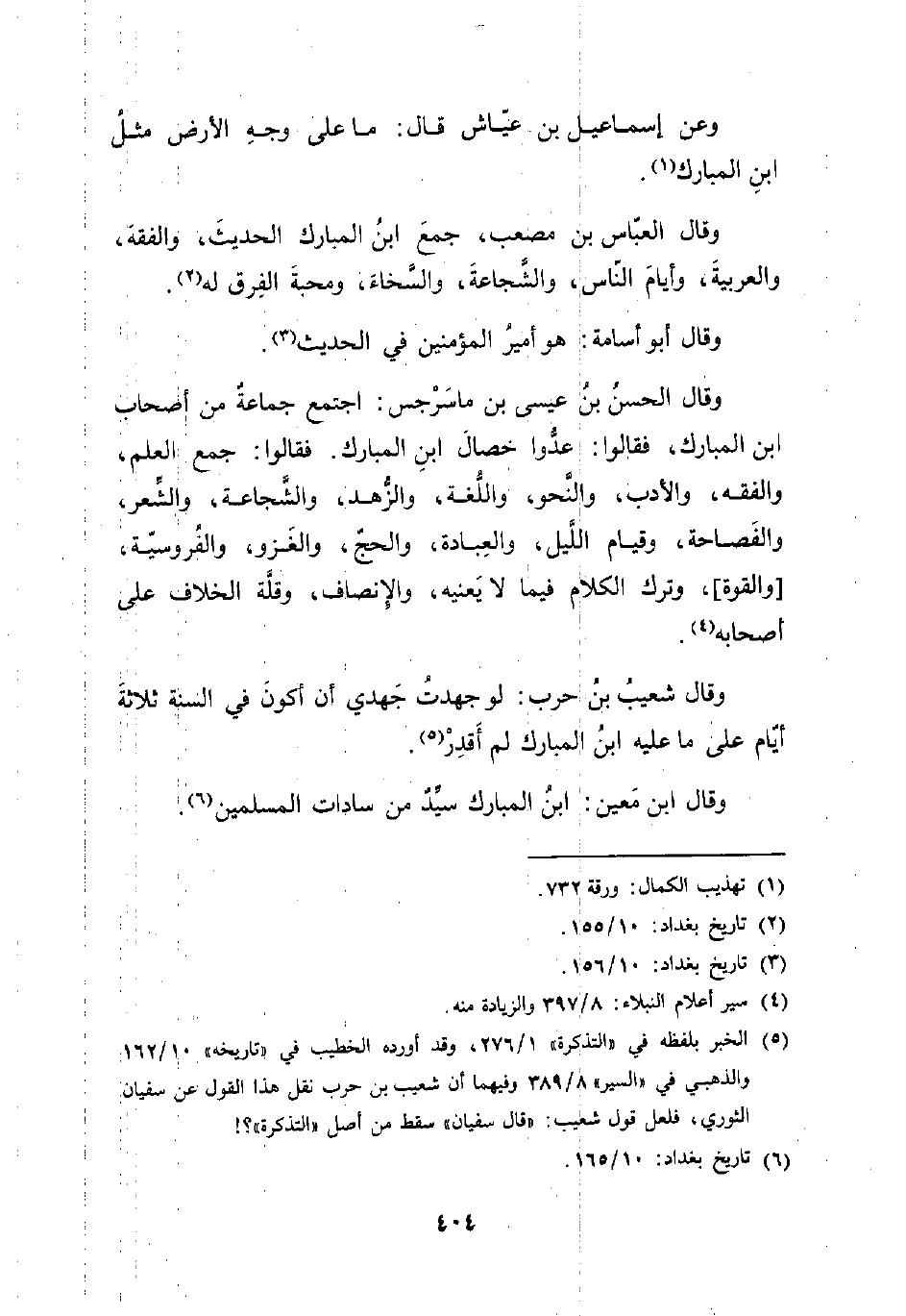 وقال ابن مَعين: ابن المبارك سيِّدٌ من سادات المسلمين (¬6).