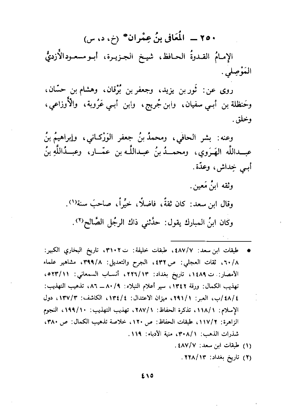 250 - المُعَافى بنُ عِمْران * (خ، د، س)