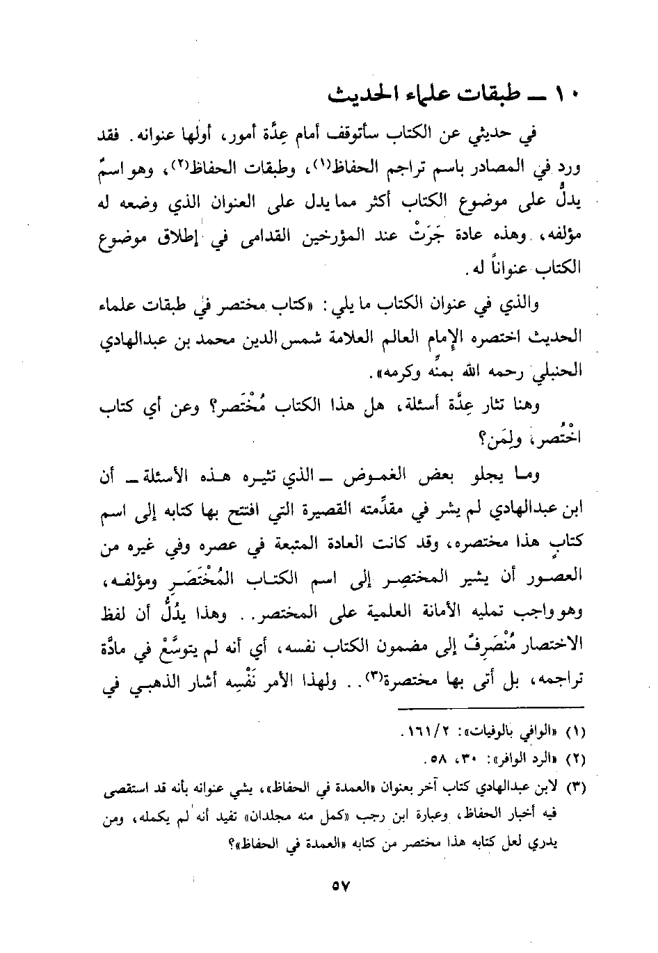 (¬3) لابن عبد الهادي كتاب آخر بعنوان "العمدة في الحفاظ"، يشي عنوانه بأنه قد استقصى في أخبار الحفاظ، وعبارة ابن رجب "كمل منه مجلدان" تفيد أنه لم يكمله، ومن يدري لعل كتابه هذا مختصر من كتابه "العمدة في الحفاظ"؟