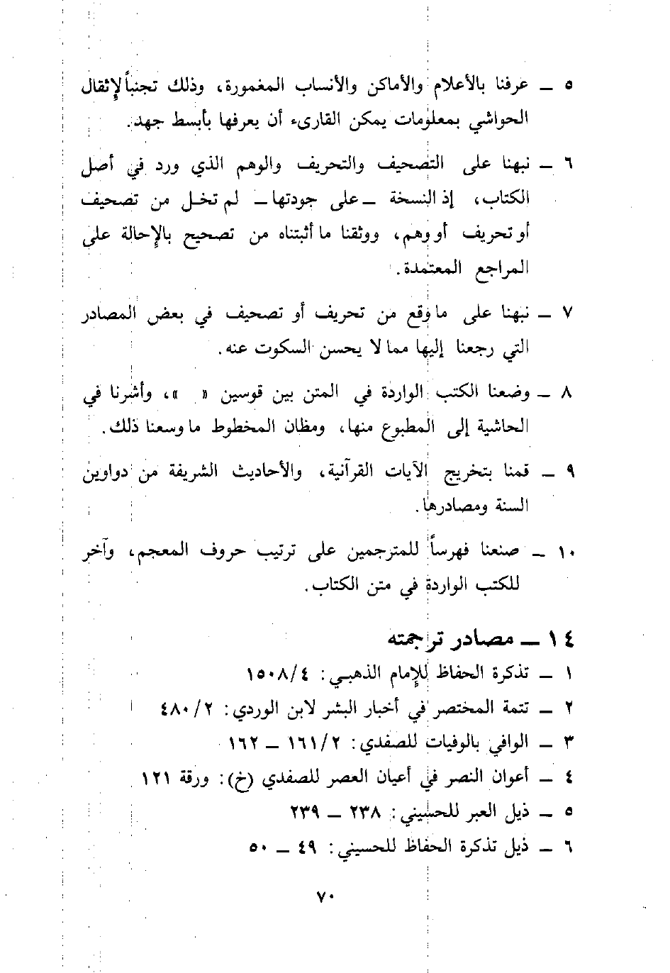 5 - عرفنا بالأعلام والأماكن والأنساب المغمورة، وذلك تجنبًا لإثقال الحواشي بمعلومات يمكن القارئ أن يعرفها بأبسط جهد.