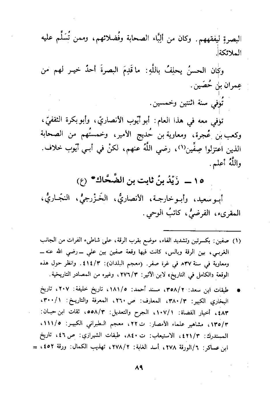 (¬1) صفين: بكسرتين وتشديد الفاء، موضع بقرب الرقة، على شاطئ الفرات من الجانب الغربي، بين الرقة وبالس، كانت فيها وقعة صفين بين علي - رضي الله عنه - ومعاوية في سنة 37 هـ في غرة صفر - (معجم البلدان) -3/ 414. وانظر حول هذه الوقعة "الكامل في التاريخ" لابن الأثير: 3/ 276، وغيره من المصادر التاريخية.