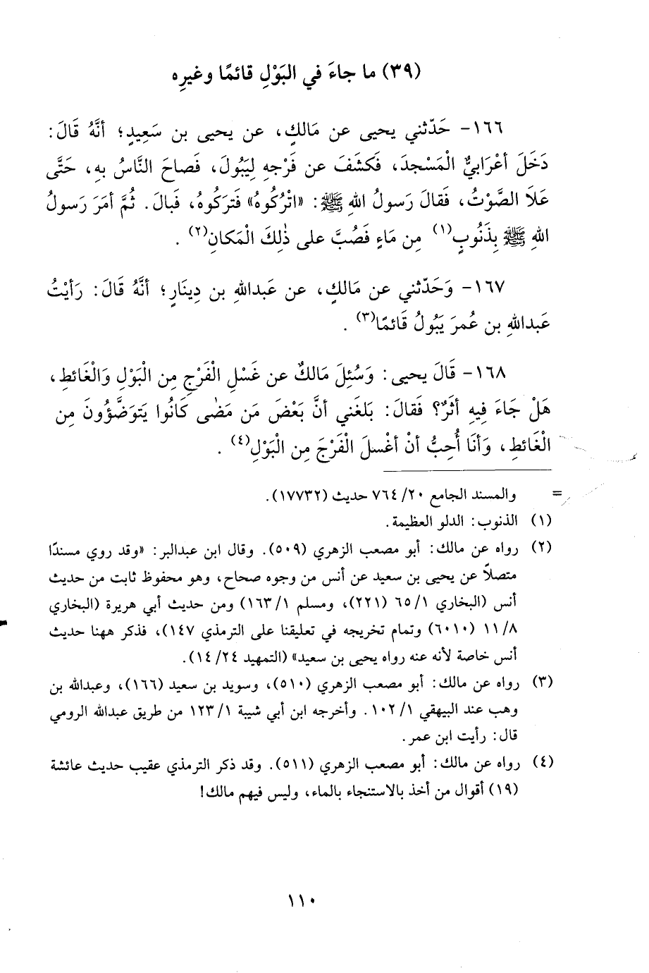 167 - وَحَدَّثَنِي عَنْ مَالِكٍ، عَنْ عَبْدِ اللهِ بْنِ دِينَارٍ، أَنَّهُ قَالَ: رَأَيْتُ عَبْدَ اللهِ بْنَ عُمَرَ يَبُولُ قَائِمًا.