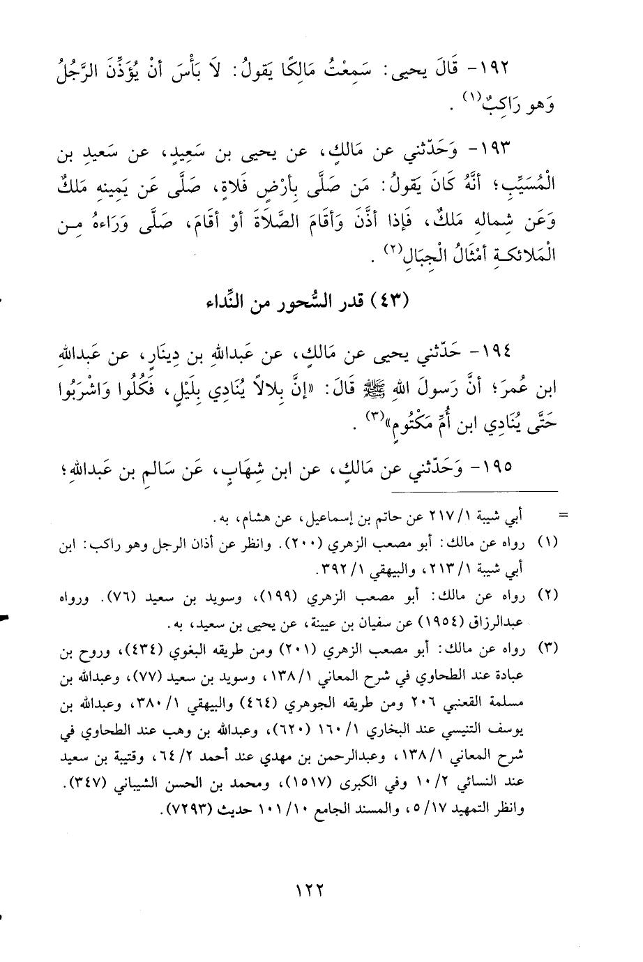 192 - قَالَ يَحْيَى: سَمِعْتُ مَالِكًا يَقُولُ: لاَ بَأْسَ أَنْ يُؤَذِّنَ الرَّجُلُ وَهُوَ رَاكِبٌ.