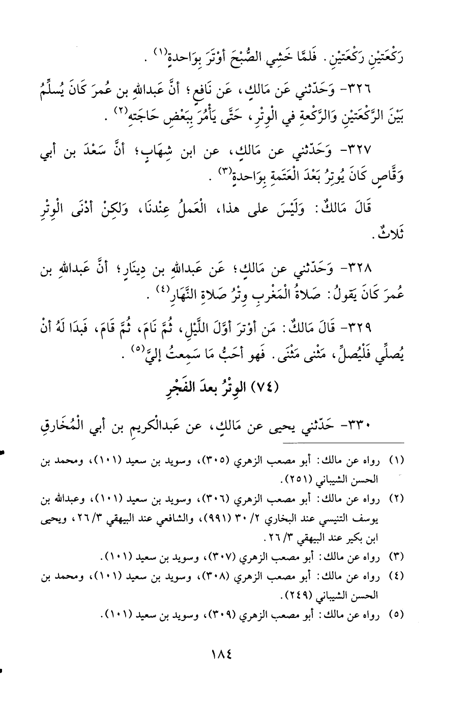 (1) وهو في رواية أَبِي مُصْعَب الزُّهْرِي، للموطأ (306)، والقَعْنَبِي (166)، وسُوَيْد بن سَعِيد (101).