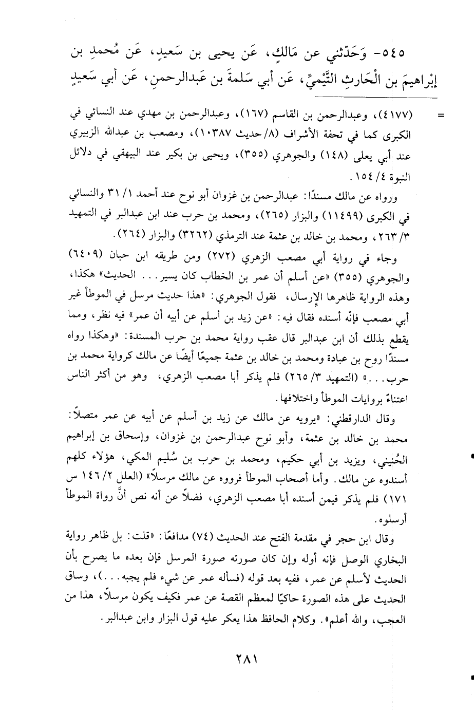 545- وَحَدَّثَنِي عَنْ مَالِكٍ، عَنْ يَحْيَى بْنِ سَعِيدٍ، عَنْ مُحَمَّدِ بْنِ إِبْرَاهِيمَ بْنِ الْحَارِثِ التَّيْمِيِّ، عَنْ أَبِي سَلَمَةَ بْنِ عَبْدِ الرَّحْمَنِ، عَنْ أَبِي سَعِيدٍ قَالَ: سَمِعْتُ رَسُولَ اللهِ صَلى الله عَلَيهِ وَسَلمَ، يَقُولُ: يَخْرُجُ فِيكُمْ قَوْمٌ تَحْقِرُونَ صَلاَتَكُمْ مَعَ صَلاَتِهِمْ، وَصِيَامَكُمْ مَعَ صِيَامِهِمْ، وَأَعْمَالَكُمْ مَعَ أَعْمَالِهِمْ، يَقْرَؤُونَ الْقُرْآنَ، وَلاَ يُجَاوِزُ حَنَاجِرَهُمْ، يَمْرُقُونَ مِنَ الدِّينِ مُرُوقَ السَّهْمِ مِنَ الرَّمِيَّةِ، تَنْظُرُ فِي النَّصْلِ، فَلاَ تَرَى شَيْئًا، وَتَنْظُرُ فِي الْقِدْحِ، فَلاَ تَرَى شَيْئًا، وَتَنْظُرُ فِي الرِّيشِ، فَلاَ تَرَى شَيْئًا، وَتَتَمَارَى فِي الْفُوقِ.