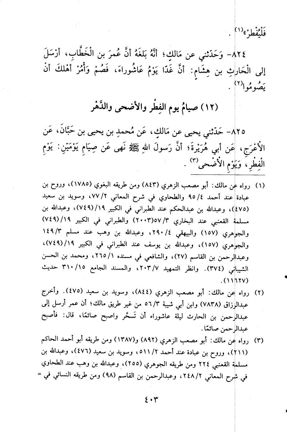 825- حَدَّثَنِي يَحْيَى، عَنْ مَالِكٍ، عَنْ مُحَمَّدِ بْنِ يَحْيَى بْنِ حَبَّانَ، عَنِ الأَعْرَجِ، عَنْ أَبِي هُرَيْرَةَ، أَنَّ رَسُولَ اللهِ صَلى الله عَلَيهِ وَسَلمَ نَهَى عَنْ صِيَامِ يَوْمَيْنِ: يَوْمِ الْفِطْرِ، وَيَوْمِ الأَضْحَى.