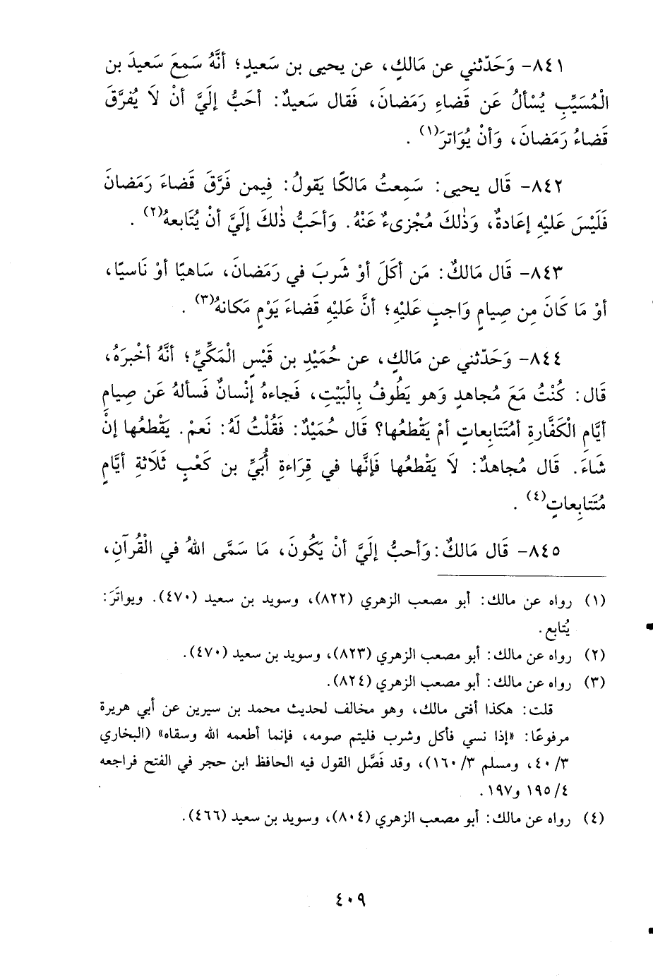 841- وَحَدَّثَنِي عَنْ مَالِكٍ، عَنْ يَحْيَى بْنِ سَعِيدٍ، أَنَّهُ سَمِعَ سَعِيدَ بْنَ الْمُسَيَّبِ يُسْأَلُ عَنْ قَضَاءِ رَمَضَانَ، فَقَالَ سَعِيدٌ: أَحَبُّ إِلَيَّ أَنْ لاَ يُفَرَّقَ قَضَاءُ رَمَضَانَ، وَأَنْ يُوَاتَرَ.
