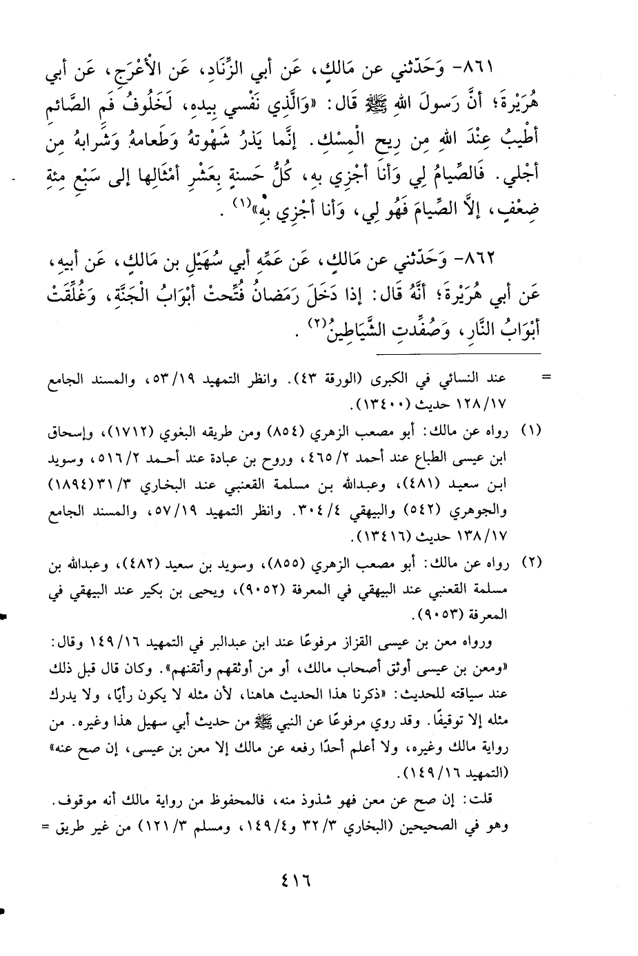 862- وَحَدَّثَنِي عَنْ مَالِكٍ، عَنْ عَمِّهِ أَبِي سُهَيْلِ بْنِ مَالِكٍ، عَنْ أَبِيهِ، عَنْ أَبِي هُرَيْرَةَ، أَنَّهُ قَالَ: إِذَا دَخَلَ رَمَضَانُ، فُتِّحَتْ أَبْوَابُ الْجَنَّةِ، وَغُلِّقَتْ أَبْوَابُ النَّارِ، وَصُفِّدَتِ الشَّيَاطِينُ.
