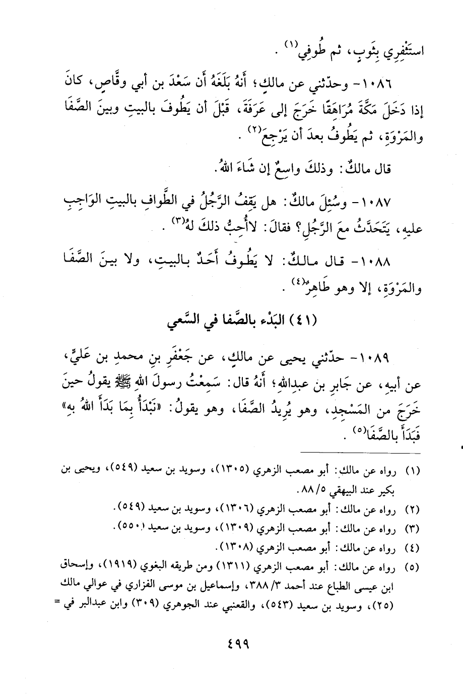 1089- حَدَّثَنِي يَحْيَى، عَنْ مَالِكٍ، عَنْ جَعْفَرِ بْنِ مُحَمَّدِ بْنِ عَلِيٍّ، عَنْ أَبِيهِ، عَنْ جَابِرِ بْنِ عَبْدِ اللهِ، أَنَّهُ قَالَ: سَمِعْتُ رَسُولَ اللهِ صَلى الله عَلَيهِ وَسَلمَ يَقُولُ حِينَ خَرَجَ مِنَ الْمَسْجِدِ وَهُوَ يُرِيدُ الصَّفَا، وَهُوَ يَقُولُ: نَبْدَأُ بِمَا بَدَأَ اللهُ بِهِ، فَبَدَأَ بِالصَّفَا.