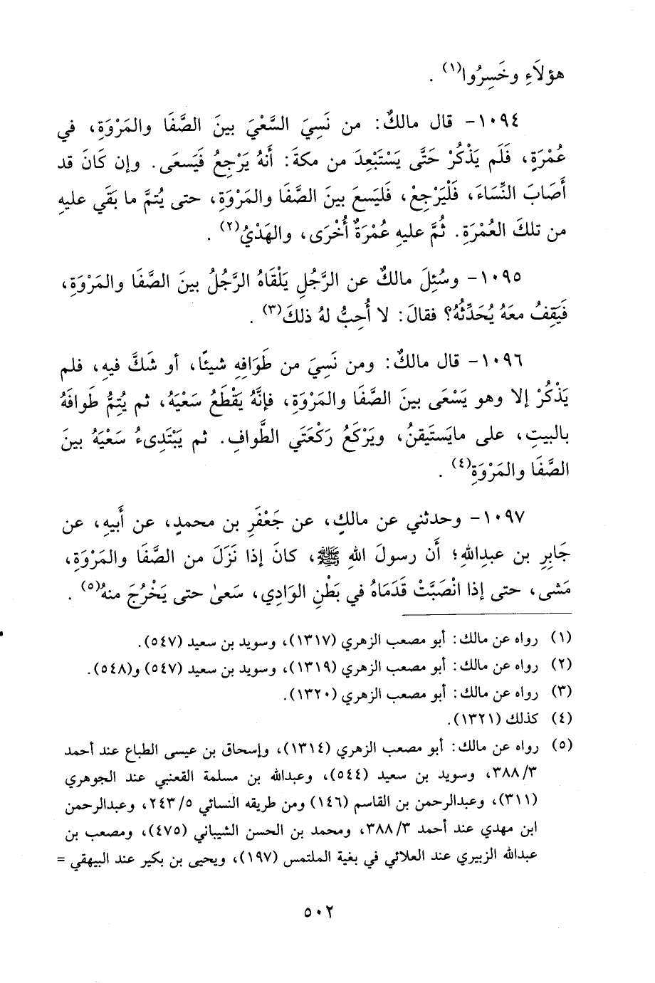 1095- وَسُئِلَ مالِكٌ عَنِ الرَّجُلِ يَلْقَاهُ الرَّجُلُ بَيْنَ الصَّفَا وَالْمَرْوَةِ، فَيَقِفُ مَعَهُ يُحَدِّثُهُ؟ فَقَالَ: لاَ أُحِبُّ لَهُ ذَلِكَ.