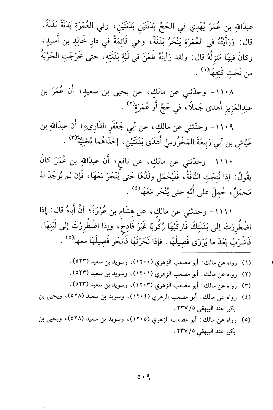 1108- وَحَدَّثَنِي عَنْ مَالِكٍ، عَنْ يَحْيَى بْنِ سَعِيدٍ، أَنَّ عُمَرَ بْنَ عَبْدِ الْعَزِيزِ أَهْدَى جَمَلاً فِي حَجٍّ أَوْ عُمْرَةٍ.