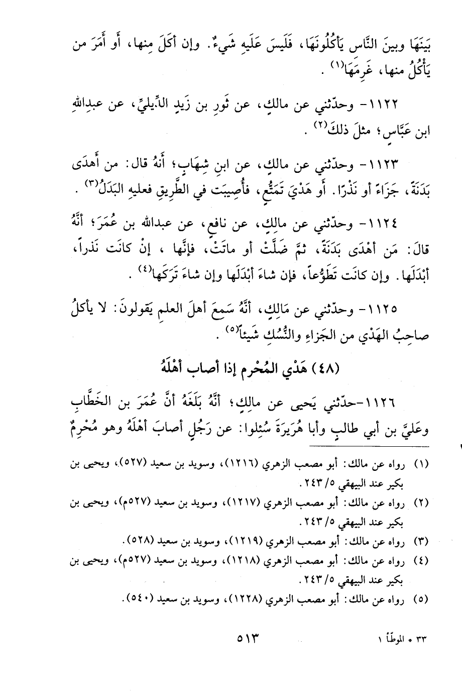 (1) وهو في رواية أَبِي مُصْعَب الزُّهْرِي، للموطأ (1218)، وسُوَيْد بن سَعِيد (527).