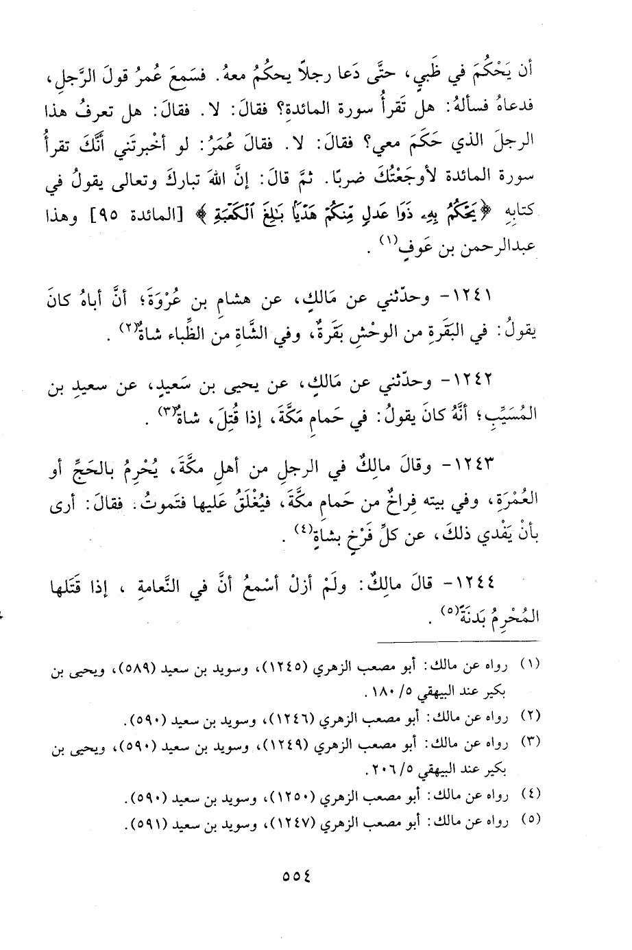 1241- وَحَدَّثَنِي عَنْ مَالِكٍ، عَنْ هِشَامِ بْنِ عُرْوَةَ، أَنَّ أَبَاهُ كَانَ يَقُولُ: فِي الْبَقَرَةِ مِنَ الْوَحْشِ بَقَرَةٌ، وَفِي الشَّاةِ مِنَ الظِّبَاءِ شَاةٌ.