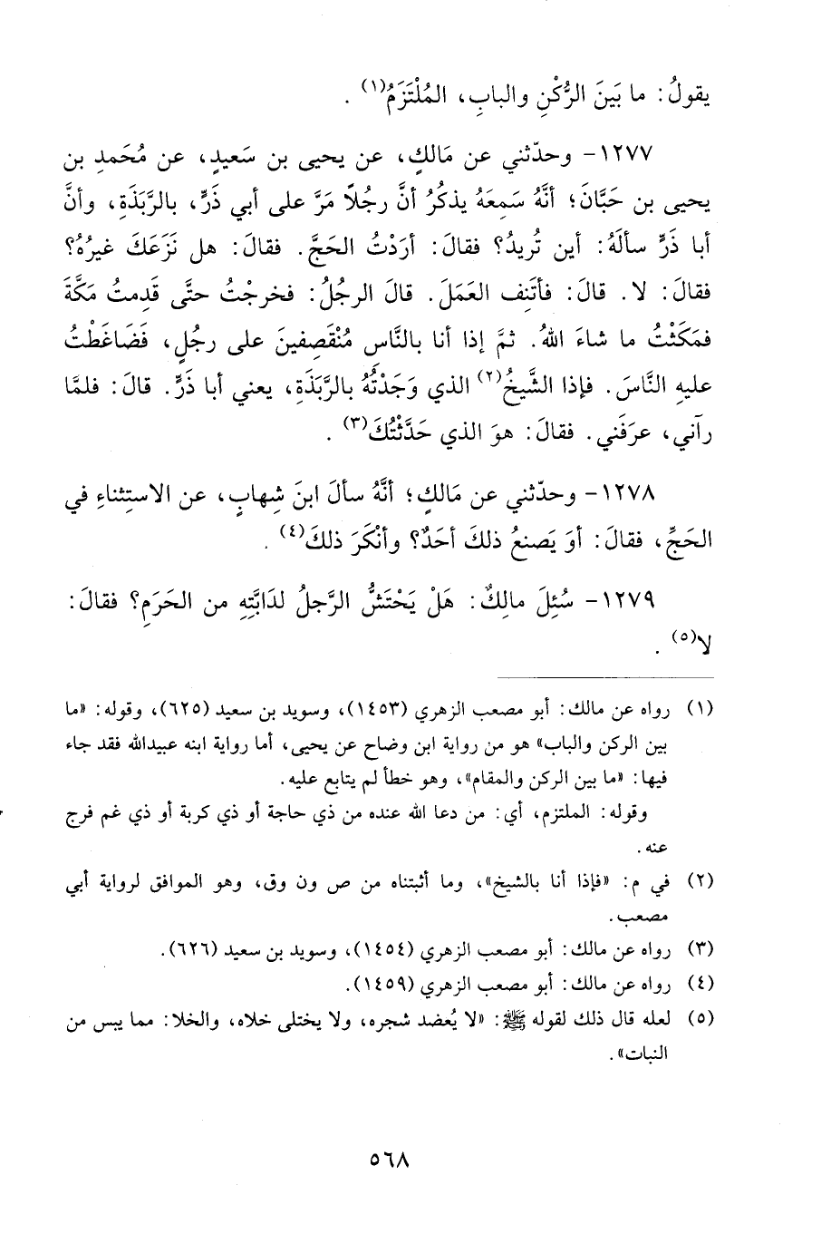 1277- وَحَدَّثَنِي عَنْ مَالِكٍ، عَنْ يَحْيَى بْنِ سَعِيدٍ، عَنْ مُحَمَّدِ بْنِ يَحْيَى بْنِ حَبَّانَ، أَنَّهُ سَمِعَهُ يَذْكُرُ، أَنَّ رَجُلاً مَرَّ عَلَى أَبِي ذَرٍّ بِالرَّبَذَةِ، وَأَنَّ أَبَا ذَرٍّ سَأَلَهُ: أَيْنَ تُرِيدُ؟ فَقَالَ: أَرَدْتُ الْحَجَّ، فَقَالَ: هَلْ نَزَعَكَ غَيْرُهُ؟ فَقَالَ: لاَ، قَالَ: فَأْتَنِفِ الْعَمَلَ، قَالَ الرَّجُلُ: فَخَرَجْتُ حَتَّى قَدِمْتُ مَكَّةَ، فَمَكَثْتُ مَا شَاءَ اللهُ، ثُمَّ إِذَا أَنَا بِالنَّاسِ مُنْقَصِفِينَ عَلَى رَجُلٍ، فَضَاغَطْتُ عَلَيْهِ النَّاسَ، فَإِذَا الشَّيْخُ الَّذِي وَجَدْتُهُ بِالرَّبَذَةِ، يَعْنِي أَبَا ذَرٍّ، قَالَ: فَلَمَّا رَآنِي عَرَفَنِي، فَقَالَ: هُوَ الَّذِي حَدَّثْتُكَ.