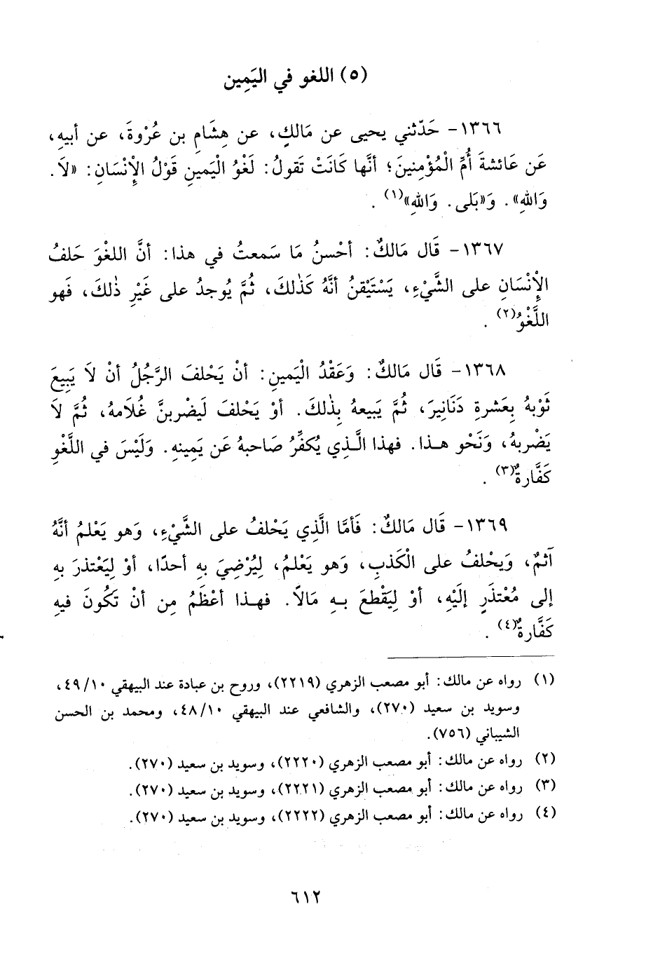 1367- قَالَ مَالِكٌ: أَحْسَنُ مَا سَمِعْتُ فِي هَذَا، أَنَّ اللَّغْوَ حَلِفُ الإِنْسَانِ عَلَى الشَّيْءِ، يَسْتَيْقِنُ أَنَّهُ كَذَلِكَ، ثُمَّ يُوجَدُ عَلَى غَيْرِ ذَلِكَ، فَهُوَ اللَّغْوُ.
