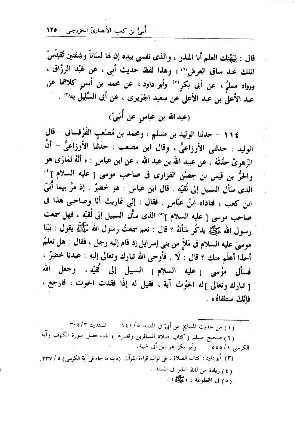 (¬1) من حديث المشايخ عن أبيّ في المسند 5/141 المستدرك 3/304.
