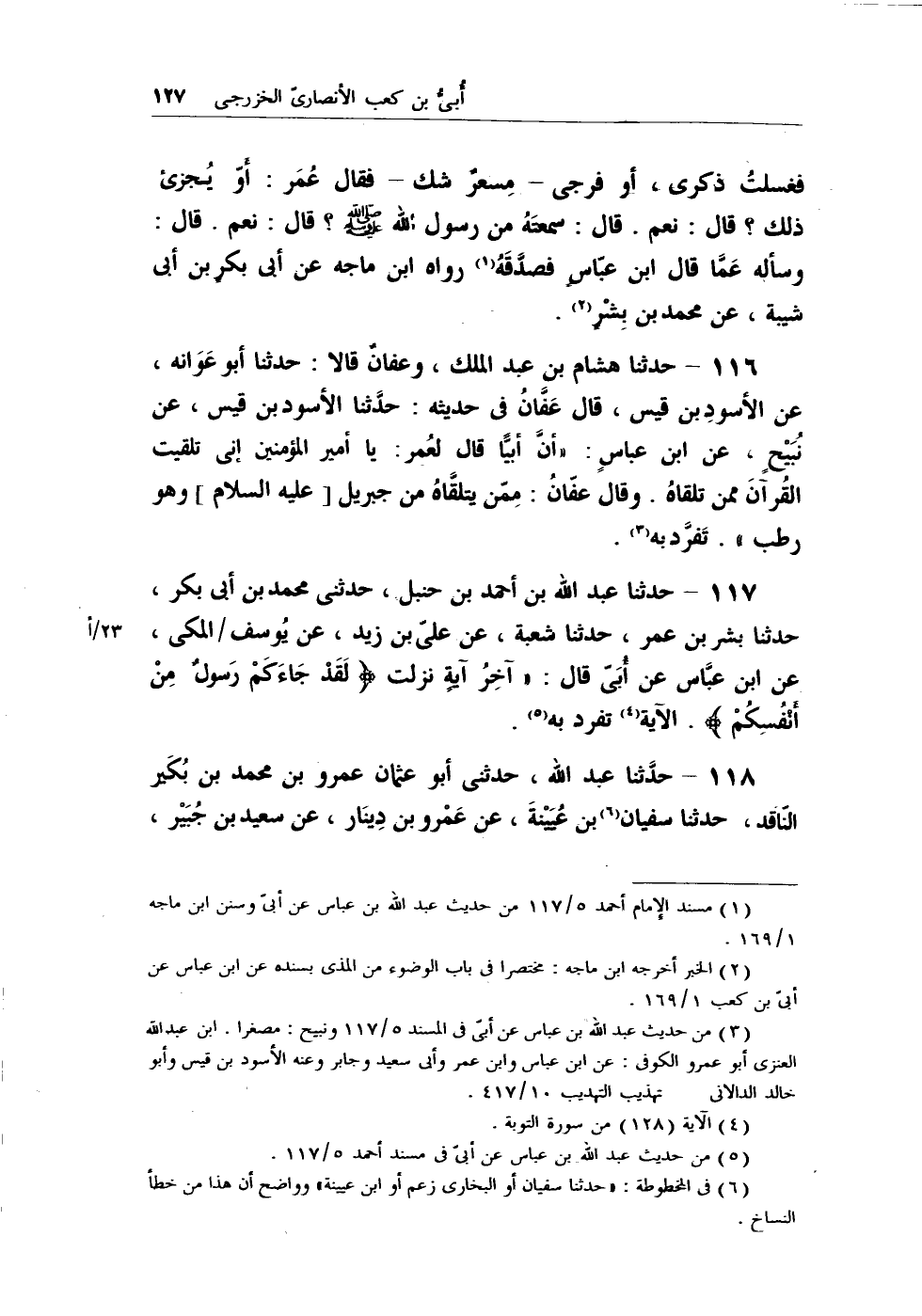 (¬1) مسند الإمام أحمد 5/117 من حديث عبد الله بن عباس عن أبيّ وسنن ابن ماجه 1/169.