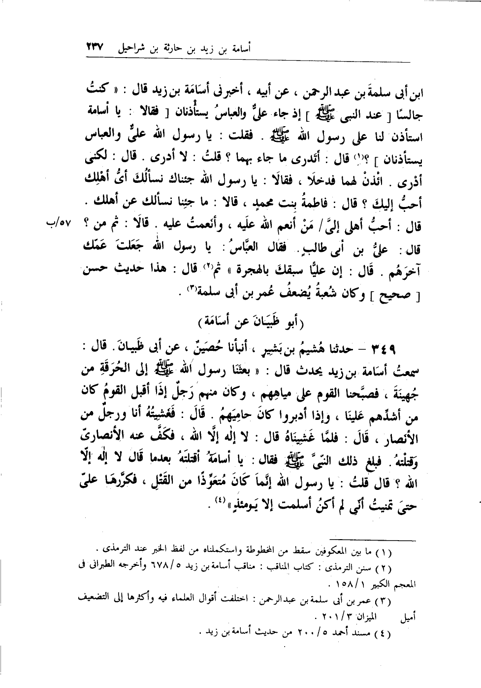 (¬2) سنن الترمذي: كتاب المناقب: مناقب أسامة بن زيد 5/678 وأخرجه الطبراني في المعجم الكبير 1/158.