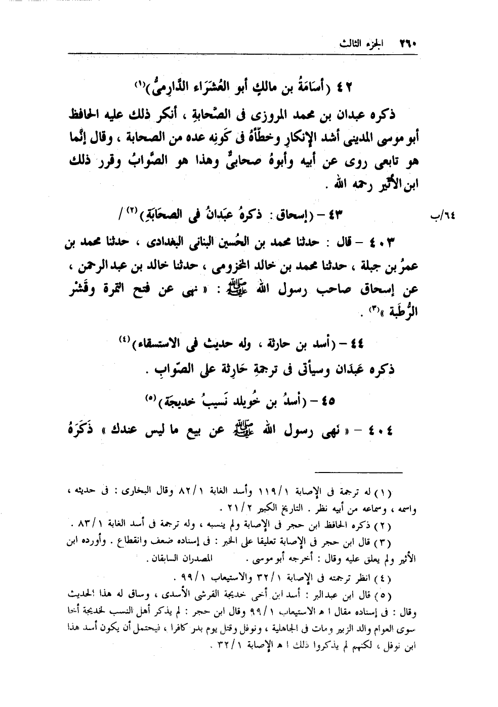 (¬5) قال ابن عبد البر: أسد ابن أخي خديجة القرشي الأسدي، وساق له هذا الحديث وقال: في إسناده مقال أهـ الاستيعاب 1/99 وقال ابن حجر: لم يذكر أهل النسب لخديجة أخاً سوى العوام والد الزبير ومات في الجاهلية، ونوفل وقتل يوم بدر كافراً، فيحتمل أن يكون أسد هذا ابن نوفل، لكنهم لم يذكروا ذلك أهـ الإصابة 1/32.