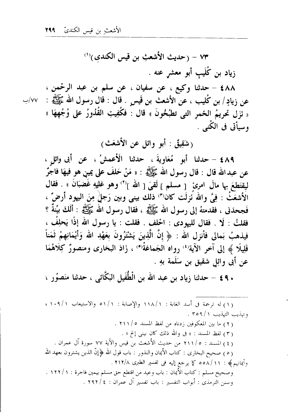 (¬4) المسند: 5/211 من حديث الأشعث بن قيس والآية 77 من سورة آل عمران.
